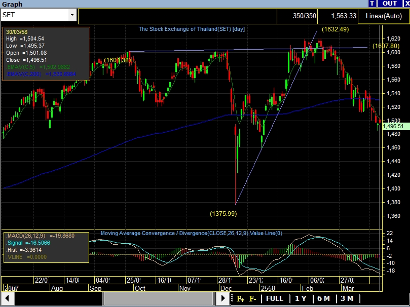 หลุดสามเหลี่ยม หลุดเส้น 200 วัน macd มุดลง