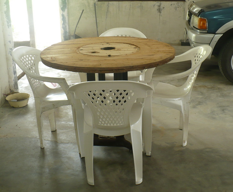 วันนี้ว่างหน่อยเลยเกิดไอเดียขึ้นมา จับสองอย่างมาประกอบกัน เป็นโต๊ะแบบกลม ๆ ขึ้นมา