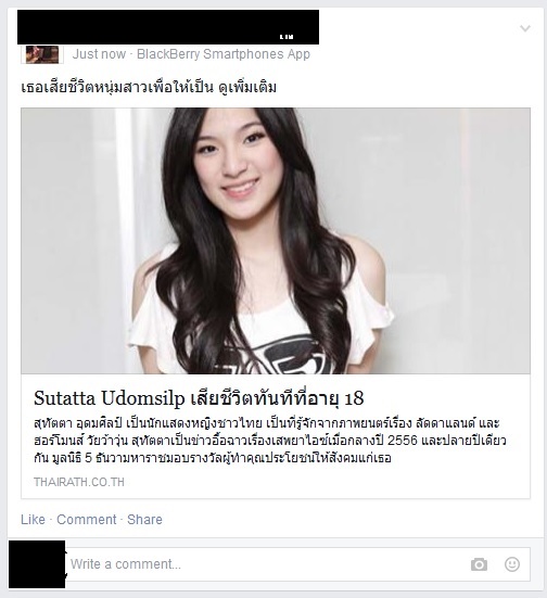 แรกๆก็มีเหมือนว่ามาแชร์คลิปโป๊ แชร์ข่าวเกี่ยวกับการมี sex แปลกๆ ตอนนี้เริ่มมีความเนียนมากขึ้น เปลี่ยนมาเล่นข่าวดาราไทยเสียชีวิตแล้ว เท่าที่เห็นก็จะมี เก้า ฮอร์โมนส์ อั้ม พัชราภา ล่าสุดที่เห็นนี่เป็นปันปันตามรูปเลยครับ มีการใส่เหมือนเป็นลิ้งค์ของเพจไทยรัฐ มีเนื้อข่าวมาให้อ่านจากปกติก่อนหน้านี้จะโล่งๆ แต่สังเกตุว่าภาษาไทยจะแปลกๆ เหมือนกับใช้กูเกิ้ลแปล ใครที่กำลังจะคลิกก็ลองพิจารณาดูก่อนนะครับ