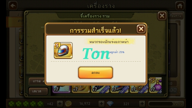 ด้วยความที่อยากได้หมวกคริสตัลก็เลยสุ่มจนได้ชิ้นส่วนหมวกA+แล้วทำการรวม