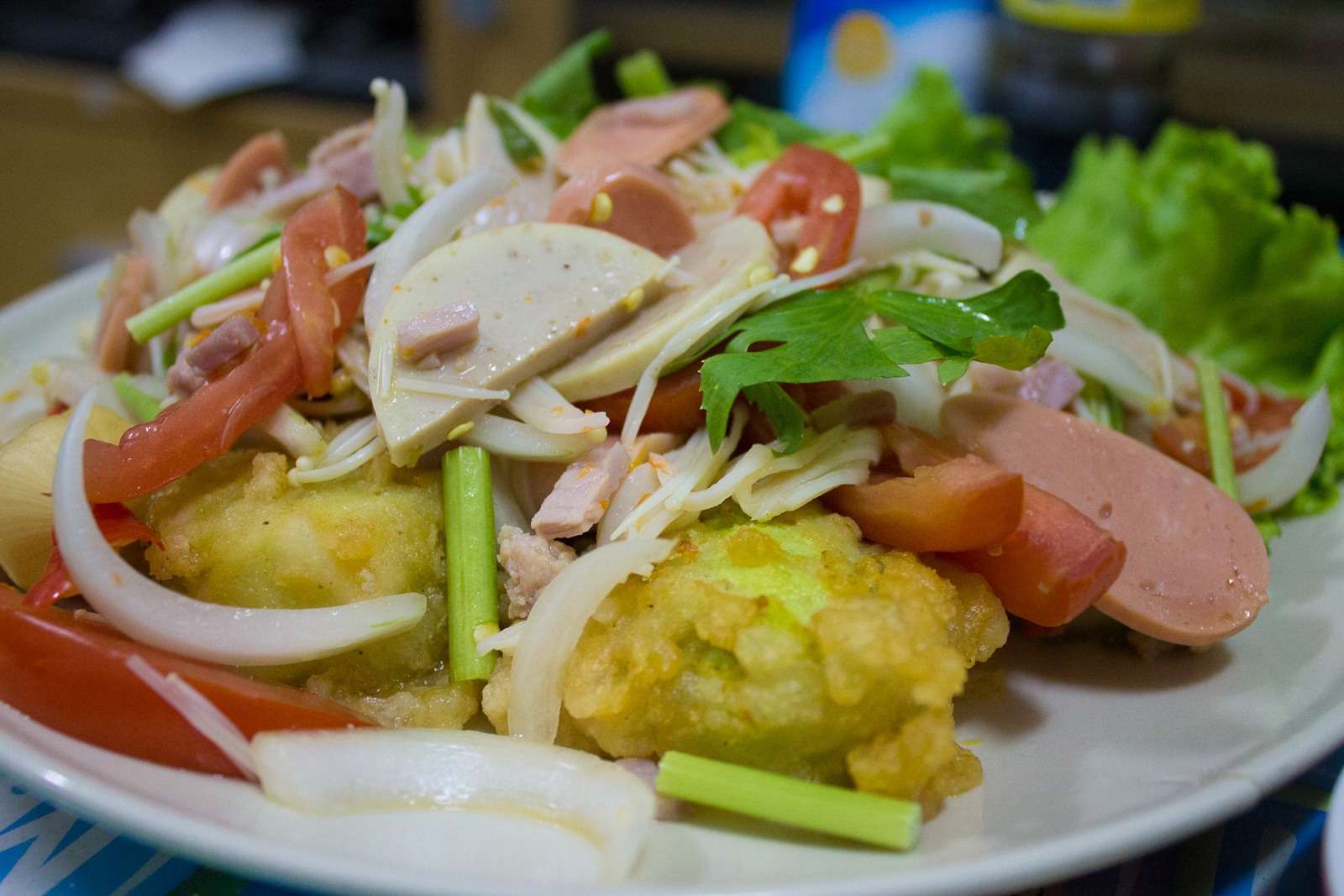 ยำปลาดุฟูราคาประหยัด สามสิบบาทไม่แพงนะเออ~