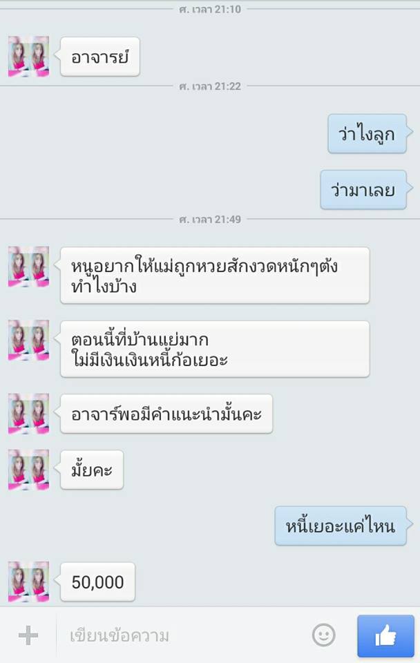 ขอให้โชคดี มีสติ ร่ำรวยๆทำมาค้าขึ้น หมดหนี้หมดสินในเร็ววันนะลูกนะ