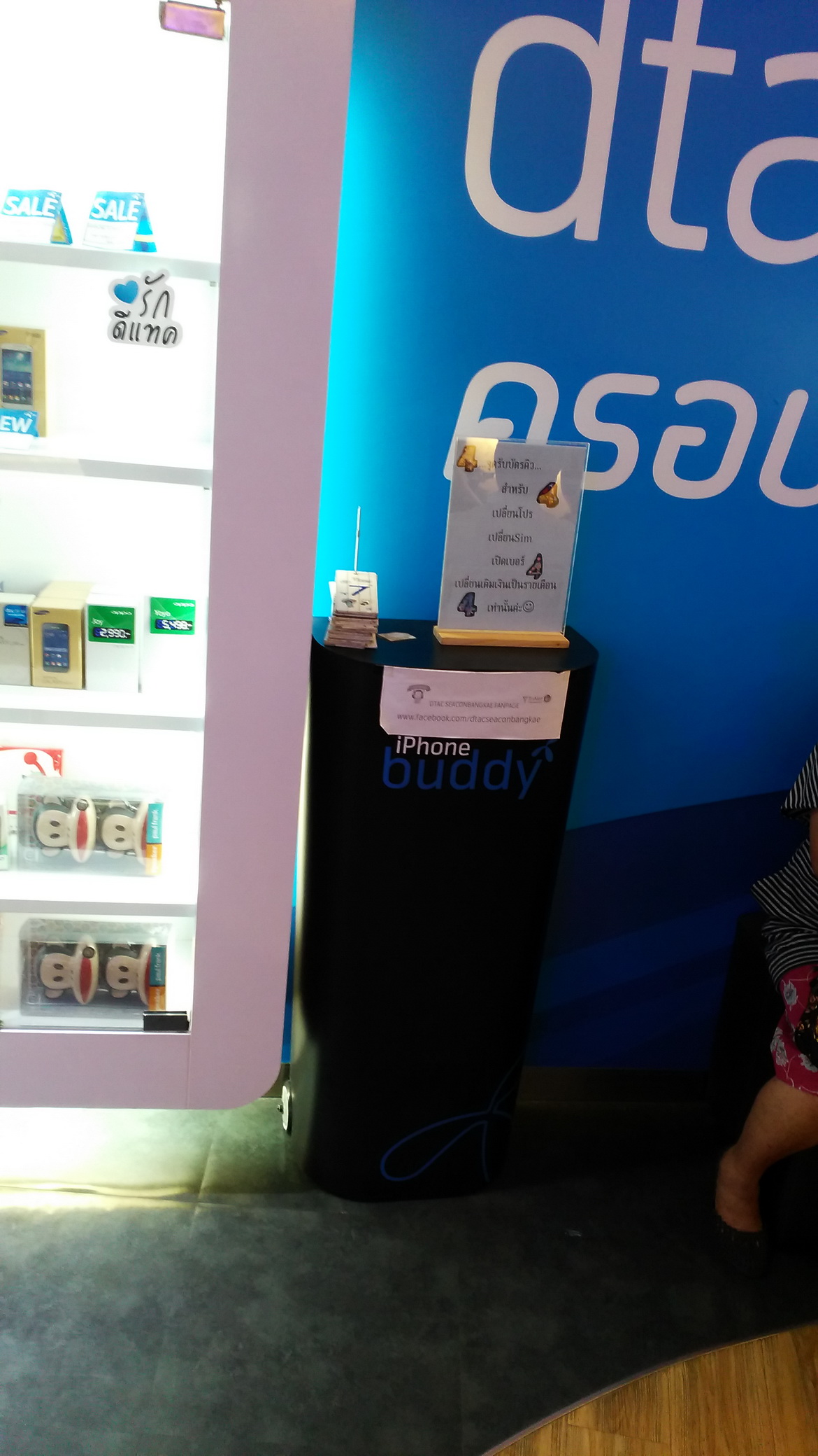 เมื่อผมเข้าไปถึง SHOP แล้ว ไม่มีพนักงานต้อนรับ เดินไปเดินมา แม้แต่คนเดียวครับ ไปยืน เอ๋อๆ เพื่อหาบัตรคิว อยู๋พักนึง ถึงเจอมุมนี้ครับ มุมรับบัตรคิว
