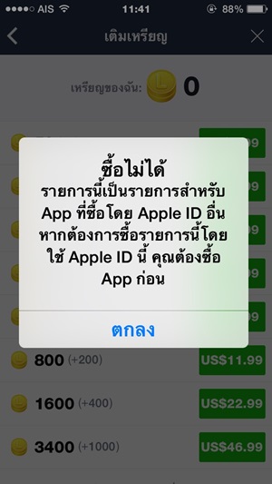 iPhone....จะซื้อสติกเกอร์ไลน แต่ซื้อไม่ได้ ครับ