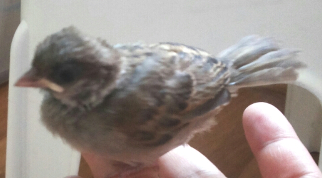 พอดีประมาณสัปดาห์ที่แล้วมีนกกระจอกตกรังลงมา น่าจะเป็นช่วงนกหัดบิน แต่ไม่เห็นแม่นกแล้วนกเอี้ยงมารุมจิกก็เลยเก็บมาเลี้้ยงค่ะ แต่มีปัญหาตรงตอนนี้นกไม่ยอมกินธัญพืชที่ให้เลย จะกินแต่แมลงอย่างเดียว(เค