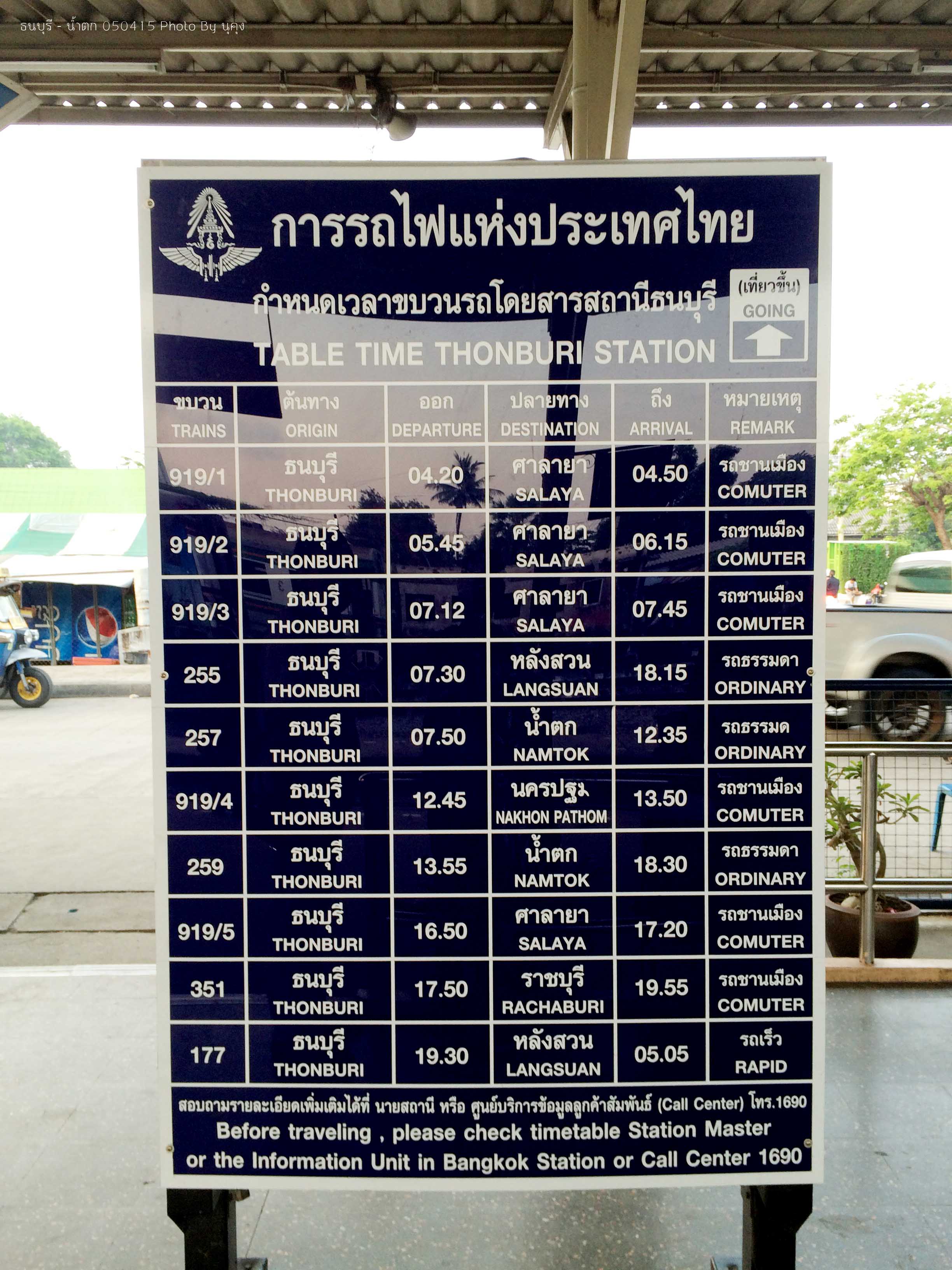 050415 0600 ถึงสถานี "ธนบุรี" ด้วยความว่องไว ปานกลัวจะตกรถไฟ แต่หารู้ไม่เฮือกกกก รถไฟออก 0750 (ถ้าไม่เลท)