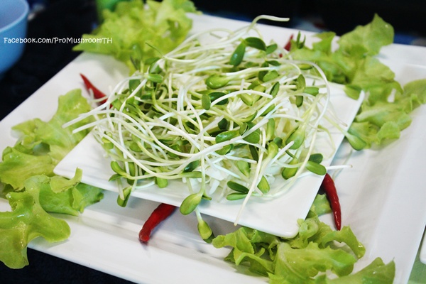 4.วันนี้เราจะไม่นำต้นอ่อนทานตะวันลงไปยำในน้ำยำนะคะ เราใช้ต้นอ่อนทานตะวัน และกะหล่ำปลีมารองจานแทนค่ะ