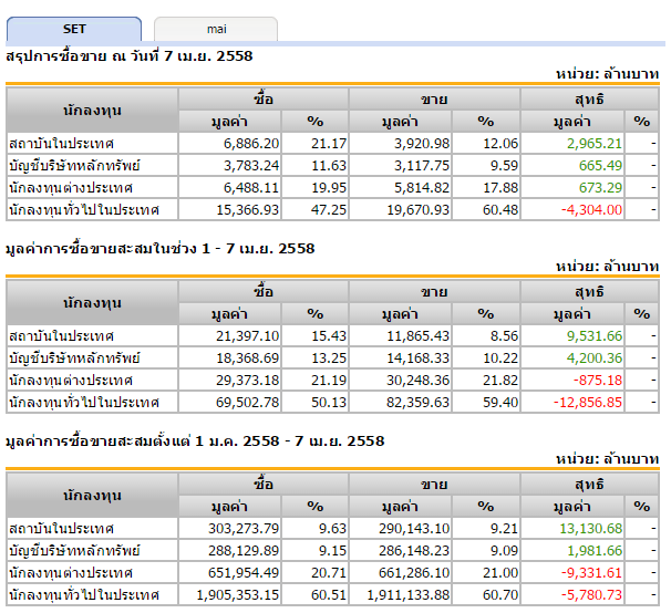 ยอดวันนี้ เม่าเทขาย 1.2 พันล้านบาท Ov<
