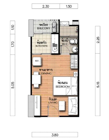 โดยที่ไม่รวมเฟอร์นิเจอร์ มีพื้นที่ห้องครัวตามแบบ(แต่ไม่ทำเป็นห้องครัว)
