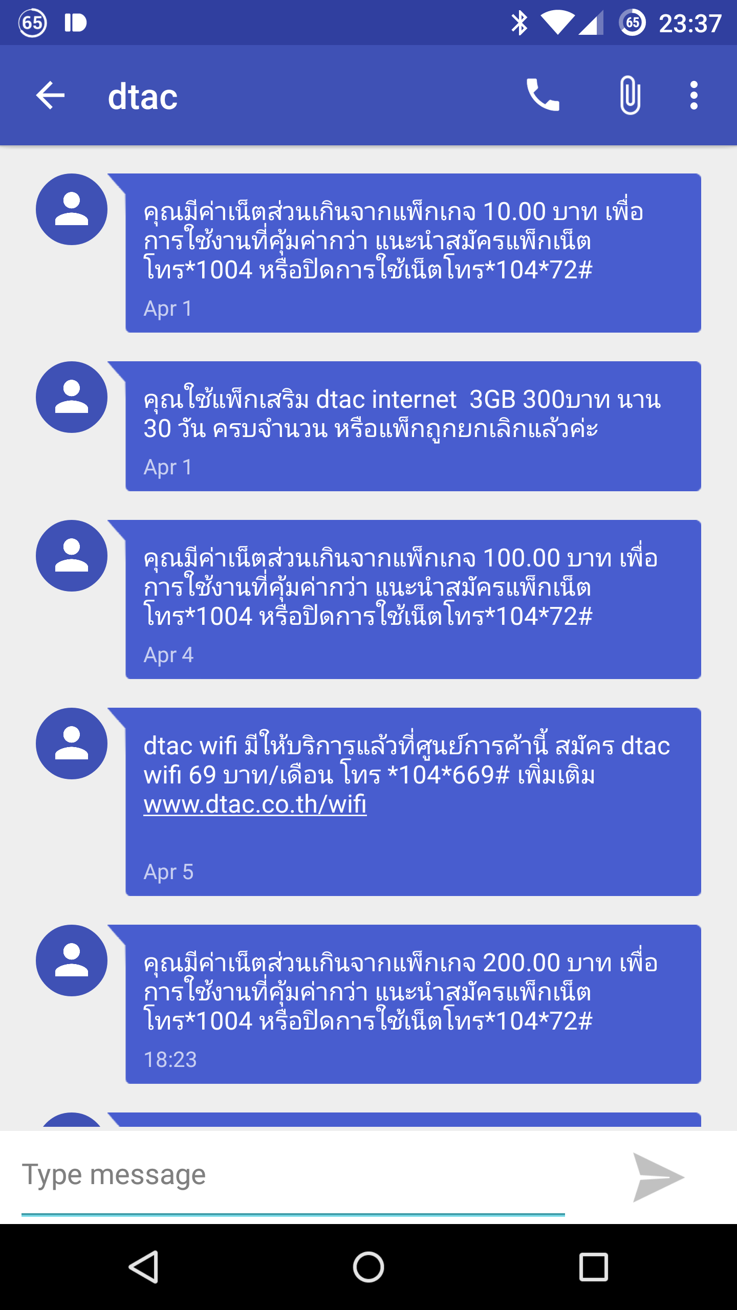 วันที่ 4 เมษายนส่งข้อความมาอีก มีค่าใช้จ่ายเกินไป 100 บาท! เอ้า ฉิบหยสิ โทรไป 1678 ให้เสียตังเล่นอีกแล้ว
