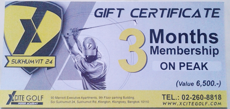 ขายบัตร Membership 3เดือน ของโรงเรียนสอนกอล์ฟ xcitegolf
