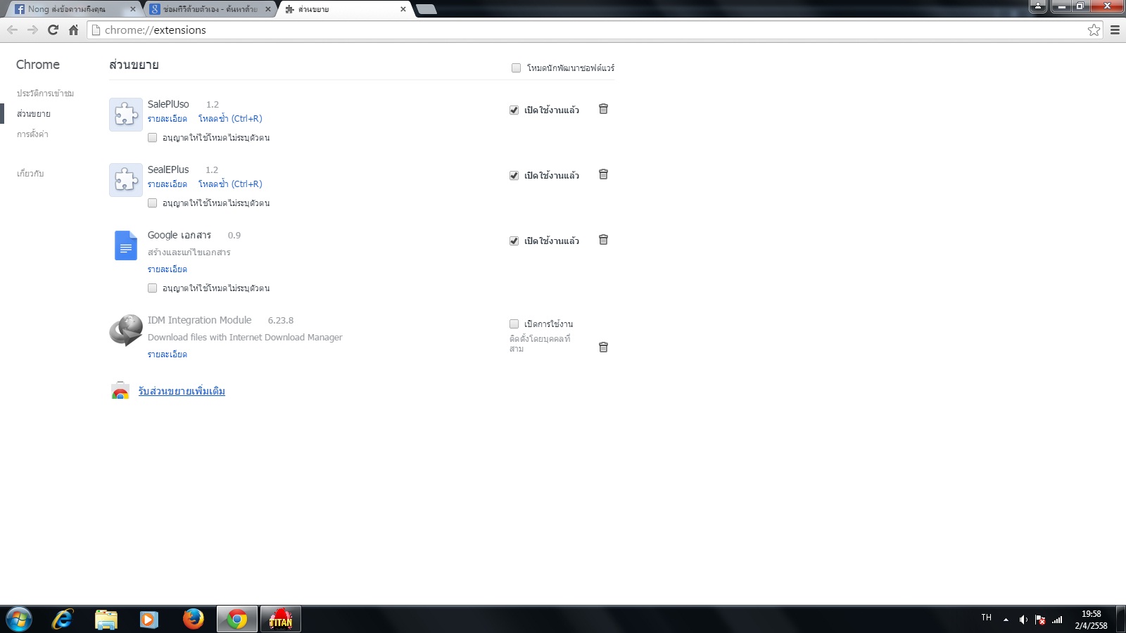 ส่วนขยายชื่อ SalePlUso ,SealEPlus ผมไม่ได้ติดตั้งครับ มันมาเอง ปิด ลบ ไปเเล้วก็เกิดมาใหม่ เวลาเข้าเว็บ มันชอบเด้งโฆษณาขึ้นมา เข้า Google หาข้อมูล มันก็เด้งโฆษณาขึ้นมาเป็นอันดับเเรก ทำยังไงดีครับ