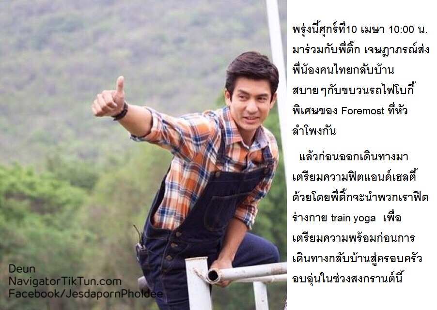 ติ๊ก เจษฎาภรณ์ นำทีมส่งคนไทยกลับบ้านเติมความสุขให้ครอบครัว ช่วงวันหยุดสงกรานต์ ด้วยรถไฟเที่ยวพิเศษ ณ สถานีรถไฟ หัวลำโพง เรียกได้ว่าเป็นอีกหนึ่งโครงการที่สร้างความสุข สำหรับโครงการโฟร์โมสต์ เติมความสุ