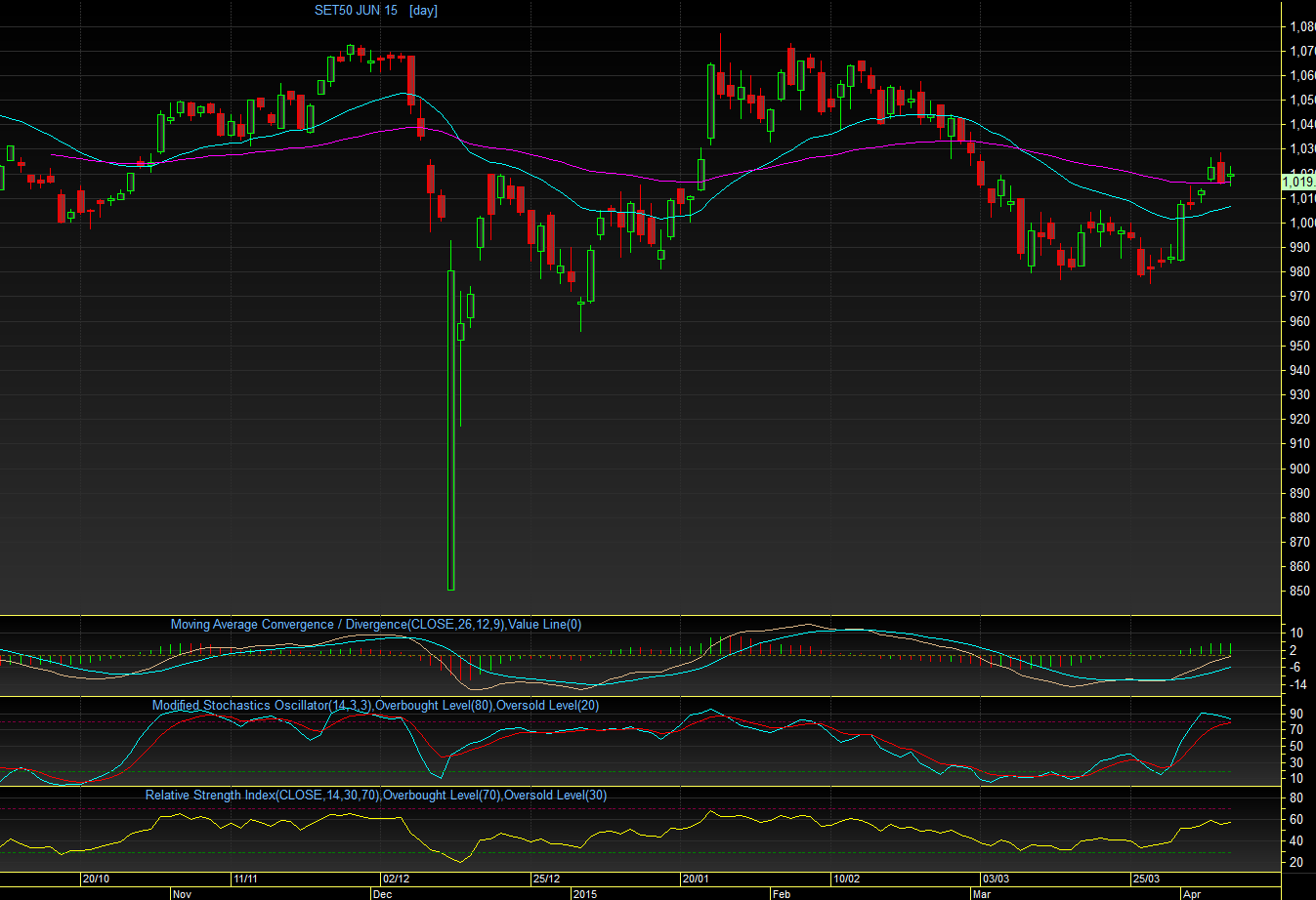 S50M15 TF Day : เมื่อวานนี้แกว่งตัวในกรอบแคบๆ ( 1014 - 1023 ) และยังคงยืนเหนือ EMA75 วัน ได้อย่างแข็งแกร่ง