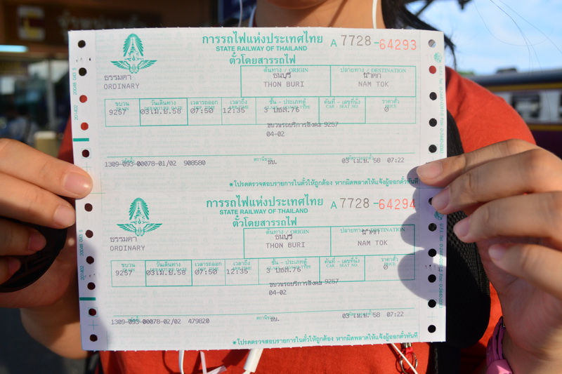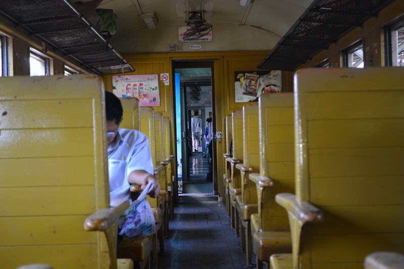 หลังจากเดินดูตั้งแต่ท้ายขบวนยันต้นขบวน เราก็ตกลงนั่งตู้ไม้กัน ถึงที่นั่งจะไม่มีเบาะนุ่มๆ แต่ก็ได้ฟีลดีเนอะ(การเลือกที่นั่ง ถ้าอยากชมทางรถไฟสายมรณะแนะนำให้นั่งฝั่งซ้าย แต่ฝั่งซ้ายจะโดนแดดมากว่าฝั่งขวาหน่อยนึง)