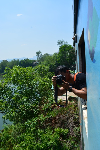 นั่งมาพักใหญ่ พอถึงสถานีกาญจนบุรีนี่รีบหยิบกล้องเตรียมเลยค่า เพราะสถานีต่อไปคือ...สะพานข้ามแม่น้ำแคว (หยิบกล้องให้ไว ถ่ายให้ไว เพราะเป็นเวลาเดียวที่รู้สึกว่ารถไฟไทยวิ่ง โค-ตะ-ระ ไวเลย555)