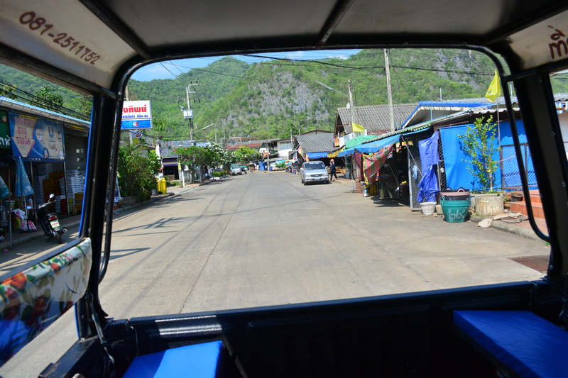 แวะเข้าห้องน้ำล้างหน้าล้างตาเสร็จ ก็ต่อสองแถวไปยังน้ำตกไทรโยกน้อยกัน สนนราคาอยู่ที่คนละ20บาท