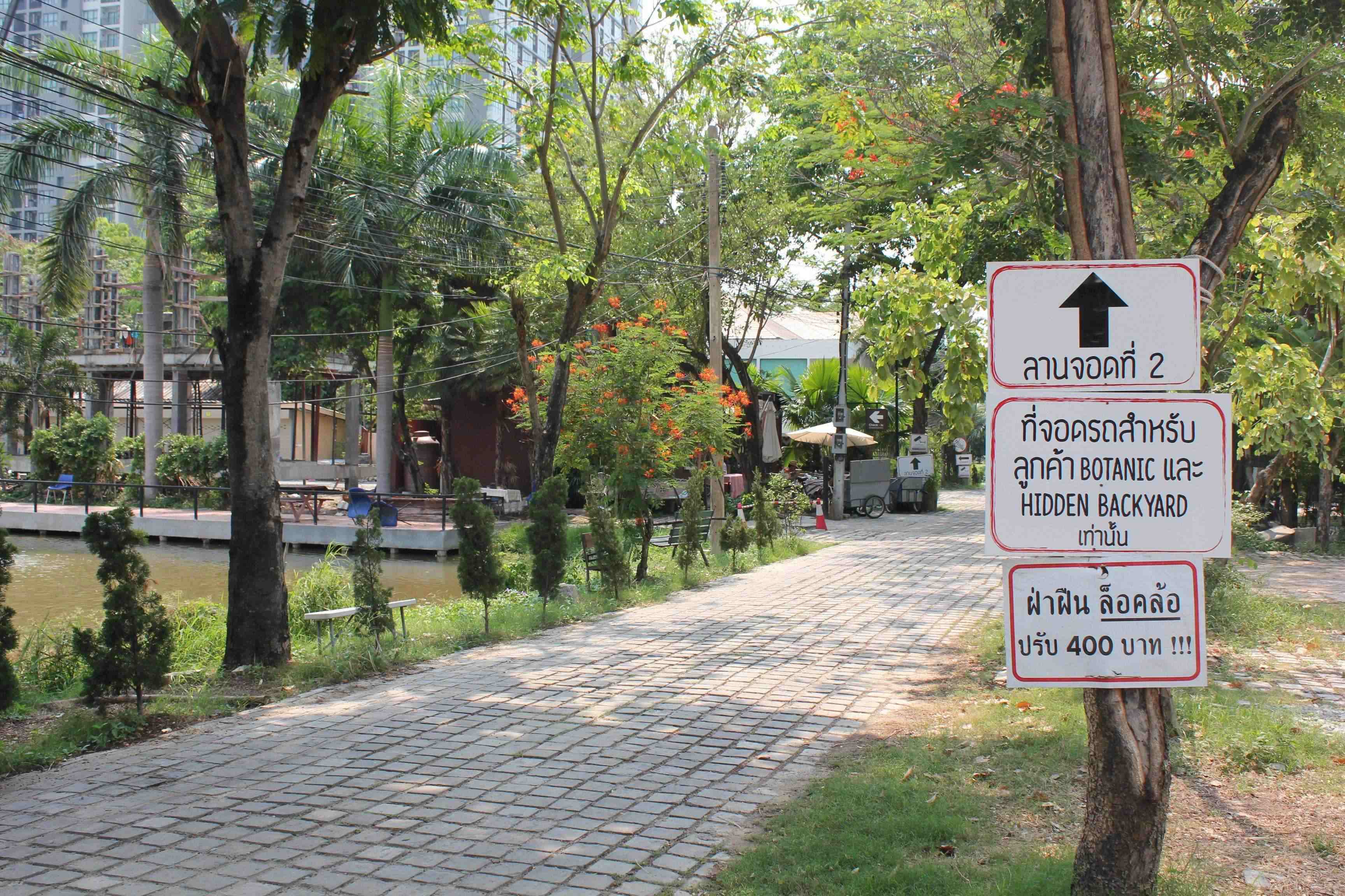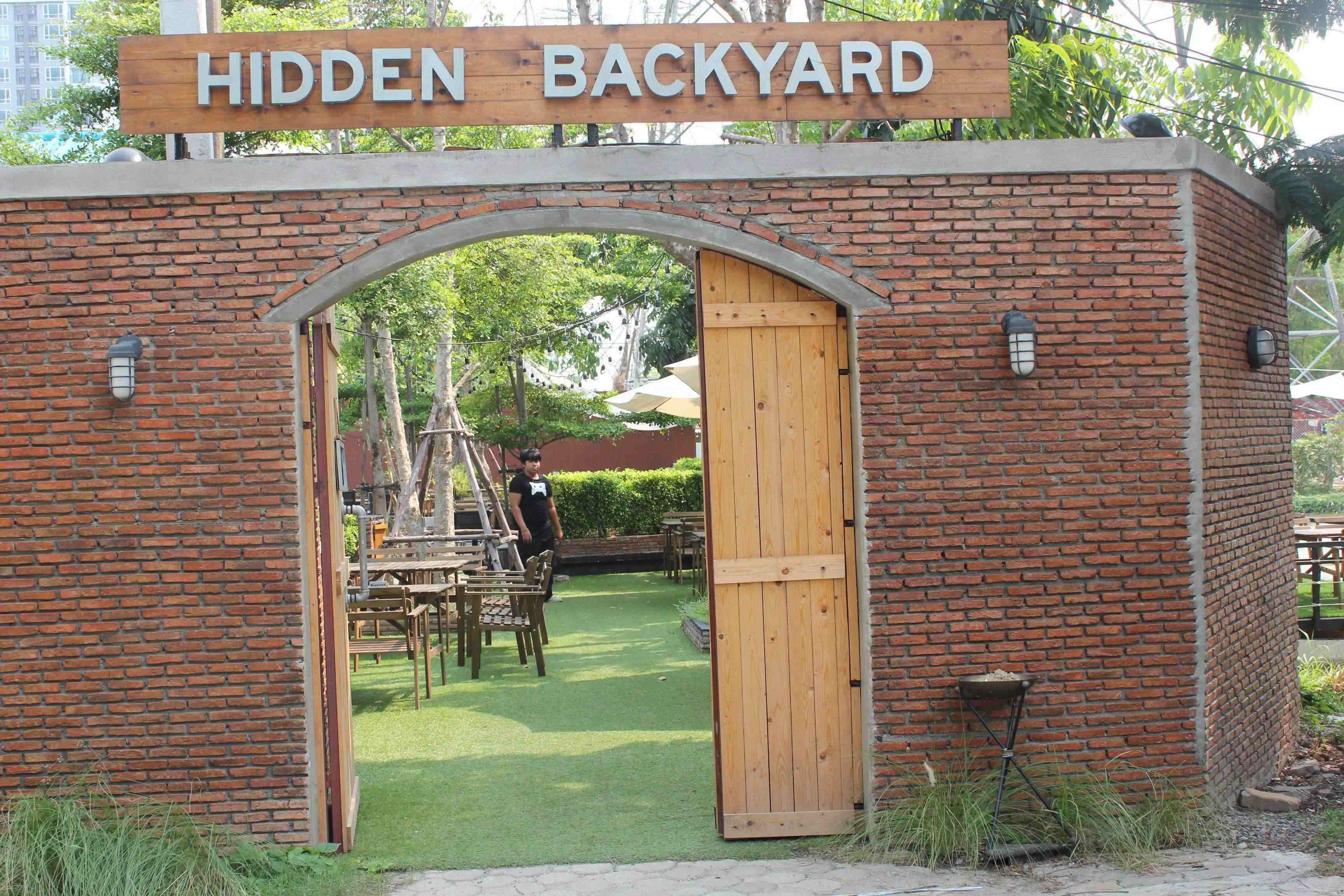 จะเจอป้ายตรงทางเลี้ยว เข้าร้าน Hidden Backyard