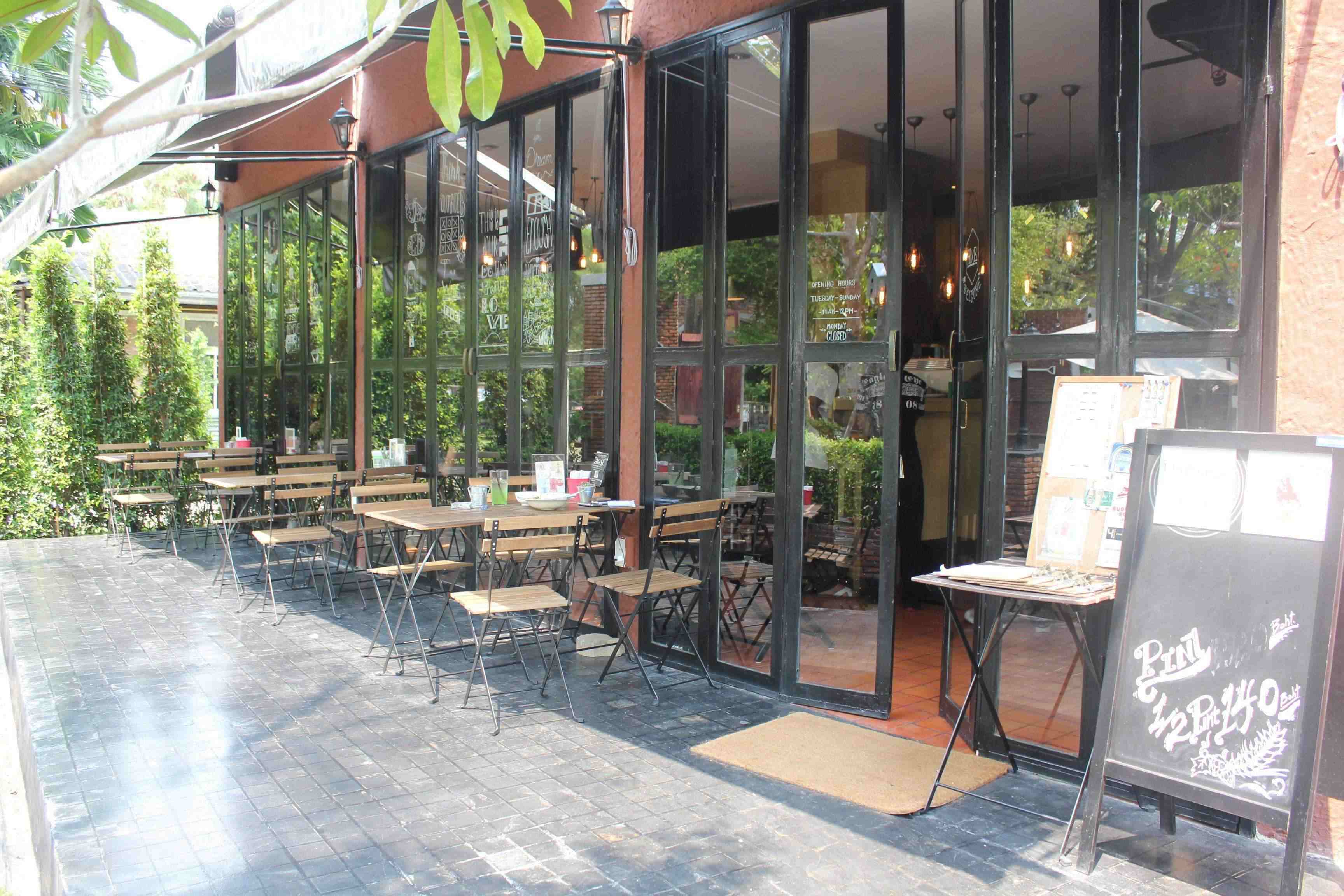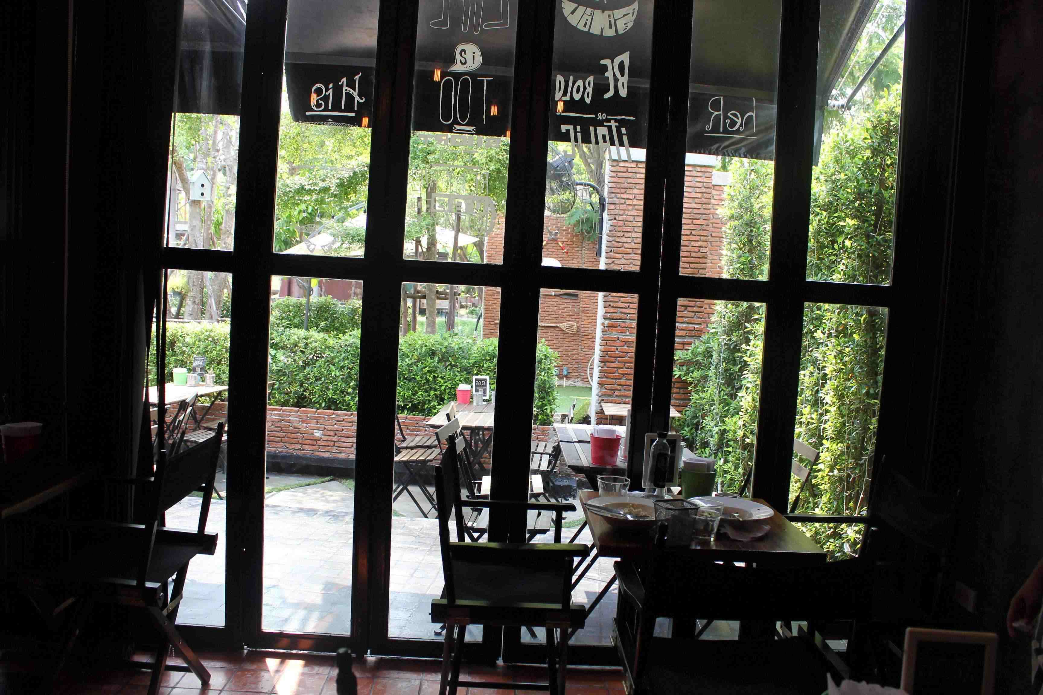 จากนั่นผมก็ขับรถเตรียมไปอีกร้านเค้าบอกร้านนี้ เนี้ยสุดดๆ ผมก็ออกจากเมืองทองเลี้ยวออกครอบประปาเลี้ยวขวา และขับมาสัก 500 เมตรก็เลี้ยวจะเจอร้าน แต่ไครมาจาก แจ้งวัฒนะ ตัวร้านอยู่ในถนนเลียบคลองประปาฝั่งเมืองทองครับ คือวิ่งบนแจ้งวัฒนะมุ่งหน้าหลักสี่ ก่อนข้ามคลองประปาจะมีถนนเล็กๆอยู่เลี้ยวซ้ายเข้าไปประมาณ 350 เมตร จะเจอซอยเล็กๆอีกที แคบนิดนึง เข้าไปก็จะเจอร้านเลยครับ จอดรถเสร็จก็จะซุ้มประทูทางเข้าเป็นอิฐแดงประดับไฟ ดูมีดีไซน์ เข้ามาก็จะเป็นลานเอาท์ดอร์ บรรยากาศดี มีโต๊ะไม้กระจายอยู่ทั่วบริเวณครับ หลอดไฟห้อยเป็นสายก็ลงตัวเข้ากันดีครับ