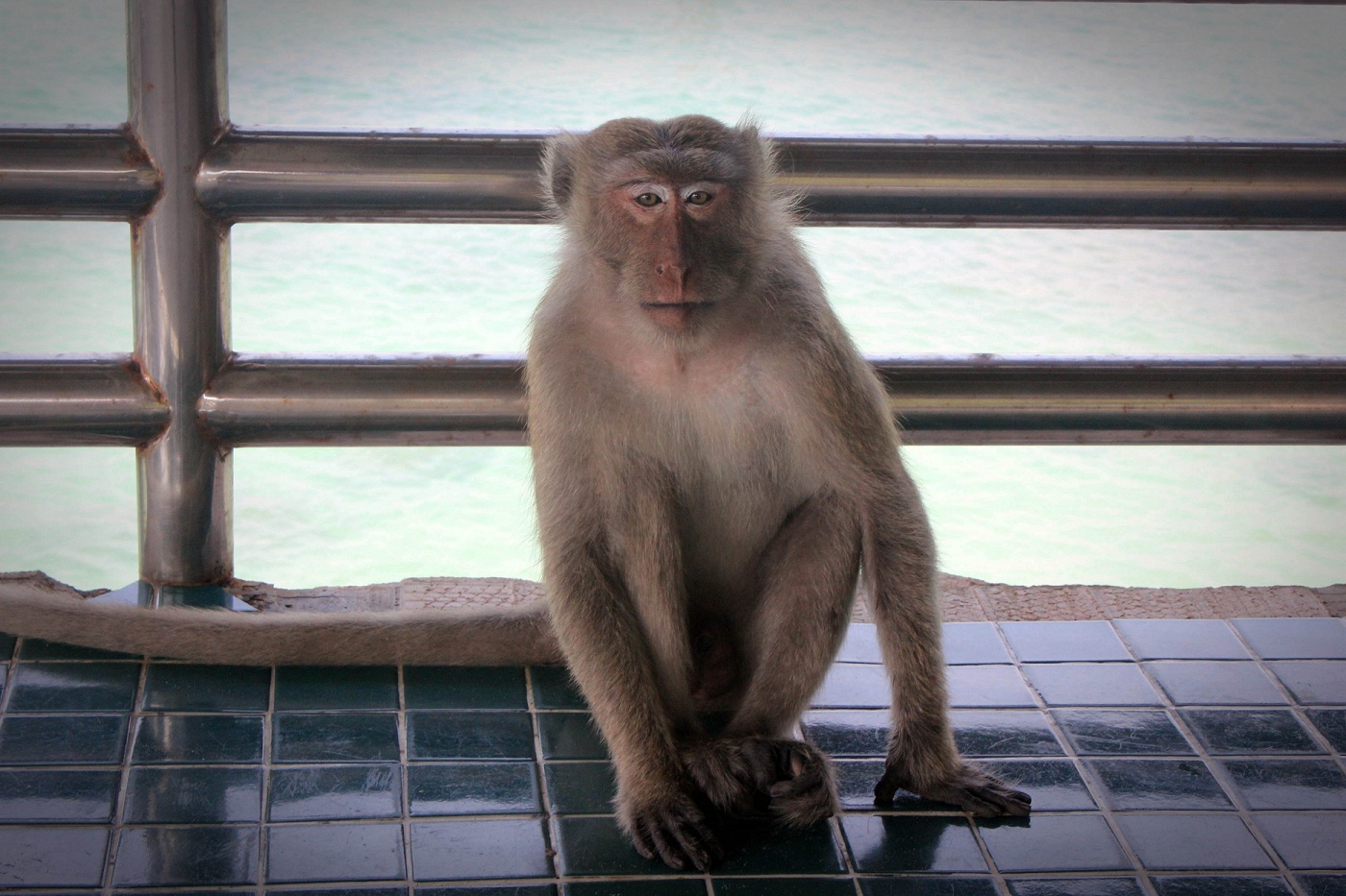 จนลงเรือมาภาพแรกที่ทำให้สะดุดตาคนๆนี้เลยการแต่งตัวครับ เสื้อยืดสีขาวแขนยาว เอี๊ยมขาสั้น รองเท้าผ้าใบสีขาว สะพายกระเป๋ากล้องมาใบเดียว ไม่มีสัมภาระอื่นๆ เลยเดาได้ว่าน่าจะมาเช้าเย็นกลับ คือผมเห็นเธอกำลังนั่งถ่ายรูปกับน้องลิงที่ท่าขึ้นจากท่าเรือครับ