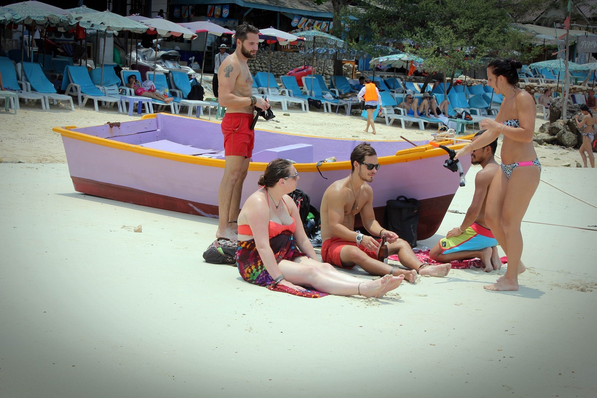 หลังจากเล่นน้ำจนเหนื่อย ผมก็มานั่งพัก เธอก็ด้วย แล้วโทรศัพท์คุยกับเพื่อน ผมแอบฟัง55 ว่าจะชวนเพื่อนมาครั้งหน้าเพราะว่าเธอขับมอเตอร์ไซไม่เป็น ถ้าผมสามารถติดต่อเธอได้ทางนี้ผมอยากจะบอกว่า ผมจะเป็นคนขับรถที่ดีได้แน่ๆครับ จะพาไปถ่ายรูปให้ทั่วเกาะเลย 555