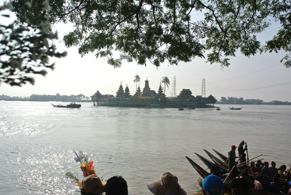 ต้องนั่งเรือ เพื่อข้ามไปที่ เกาะเจดีย์ กลางน้ำ และต้องถอดรองเท้าฝากไว้บนเรือ วัดที่พม่า ทุกวัดห้ามใส่รองเท้าเข้าค่ะ และห้ามนุ่งกางเกง ขาสั้น