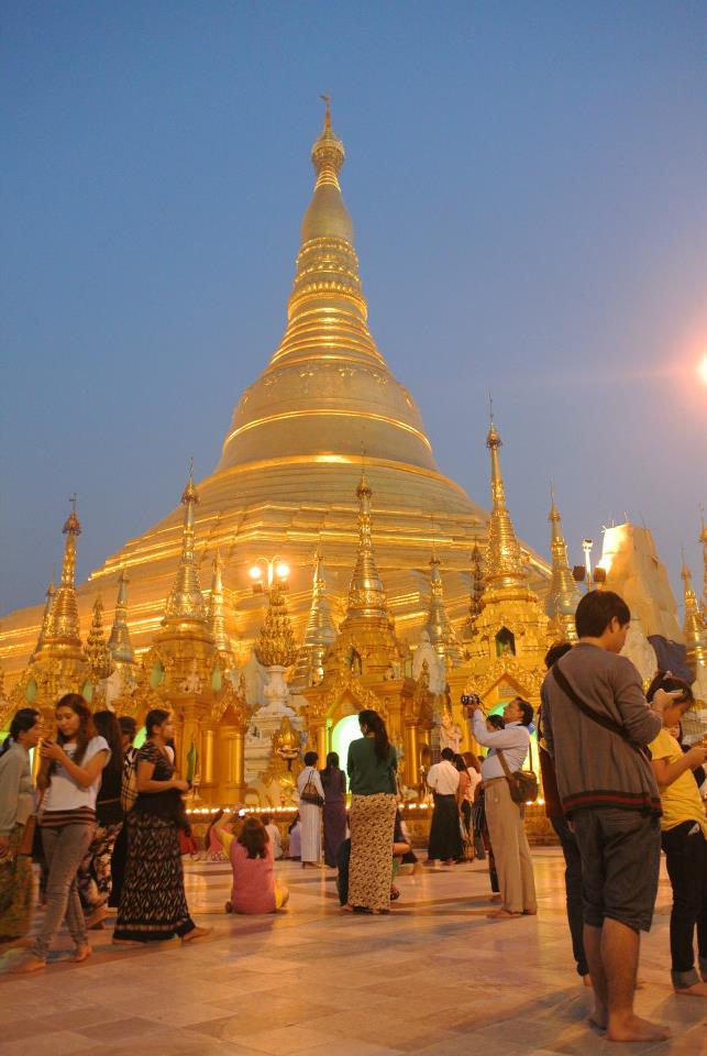 ต่อมาก็เข้าย่างกุ้งเพื่อ ไปเจดีย์ ชเวดากง ไกด์มาเรามาตอนเย็น เขาให้เหตุผลว่า จะได้ถ่ายรูปช่วงท้องฟ้าเปลี่ยนสี และสามารถมองเห็นสีของพลอย เมื่อไปยืนจุดที่มองเห็น