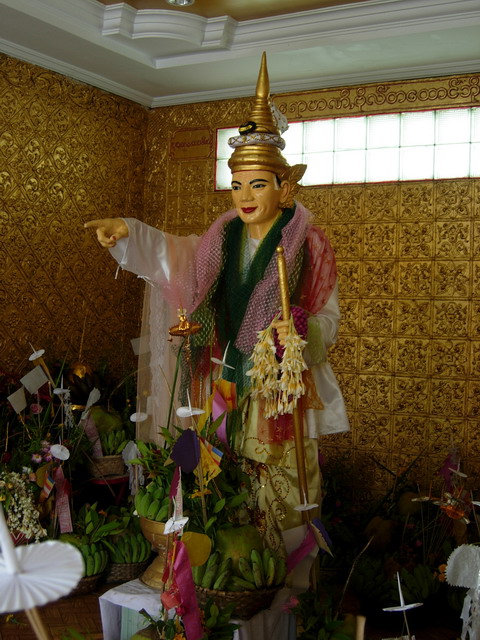 เทพทันใจ หรือ นัตโบโบอยู่ศาลาริมน้ำด้านซ้ายมือของเจดีย์