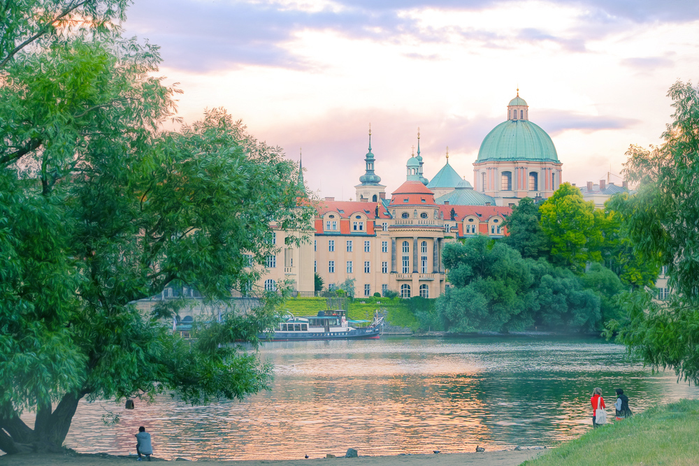 เดินออกมาด้านหลังปราสาทวิวสวยไม่ธรรมดาเหมือนกัน เดินลงมาด้านหลังตัดข้ามถนนไปเจอทางเดินเล็กๆ เดินลงไปริมแม่น้ำได้ เห็นสะพานชาร์ลถนัดตา อีกทั้งไม่น่าเชื่อ มันมีหงส์ด้วย เอ้ย อะไรมันจะเหมาะเจาะขนาดนั้น
