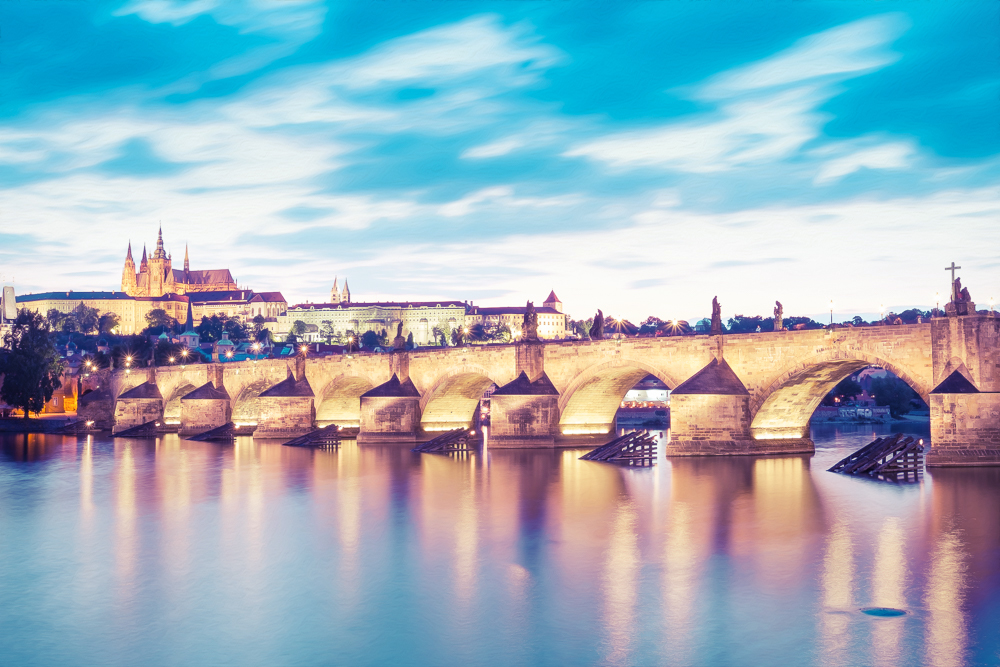 จากสถานนีรถไฟใต้ดินเราเดินสบายๆ มาซักพัก ก็ถึงสะพานชาร์ลที่ไร้ผู้คนกำลังอาบแสงแดดอุ่นๆยามเช้า