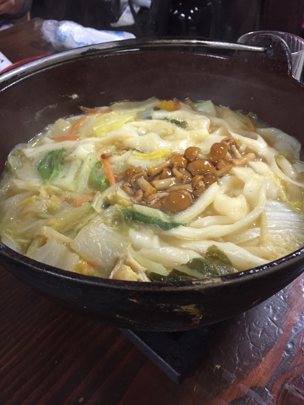 เค้าเสิร์ฟอุด้งเป็นหม้อเลย เราไป4คนก็ของสั่ง2ที่และขอถ้วยแบ่ง เจ้าของร้านก็ยินดี และคนทั้งร้านที่มามากกว่า1คนก็ทำเช่นเดียวกับเรา