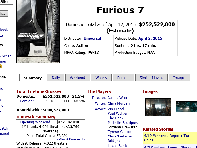 fast 7 ทำรายได้ทั่วโลก 26,000 ล้านบาทหรือราว 800 ล้านเหรียญสหรัฐแล้ว
