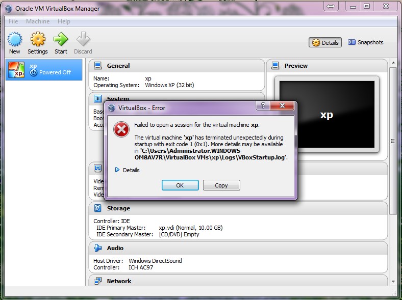 ผมติดตั้ง VirtualBox และจะทำการลง window ในนี้ แต่มันขึ้น error ดังรูป ไม่เห็นมีวิธีแก้เลย