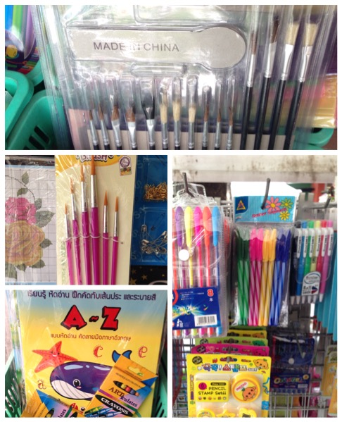 หมวดนี้หลายคนน่าจะชอบที่สุด คือพวกอุปกรณ์เครื่องเขียนค่ะ ในร้านประเภทนี้มีเครื่องเขียนหลากหลายมากๆๆๆ แล้วแต่อย่างก็ให้จำนวนของหลายชิ้นมากๆ เช่น คัตเตอร์1แพ็ค มีทั้งหมด5อัน ราคาแค่25บาท เฉลี่ยอันละ5บาทค่ะ (ไม่รู้ว่าคนผลิตได้อะไร555) หรือพวกสีไม้ สีเทียน สีน้ำมีครบทุกอย่างค่ะ