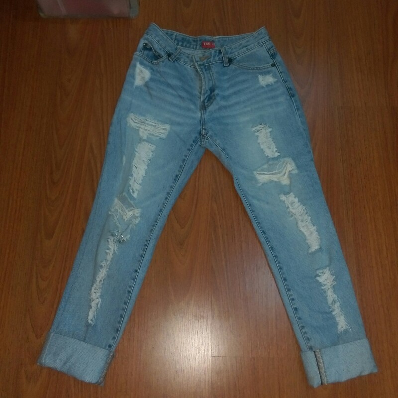 3. กางเกงยีนส์ขาด ทรงบอย เท่ๆ