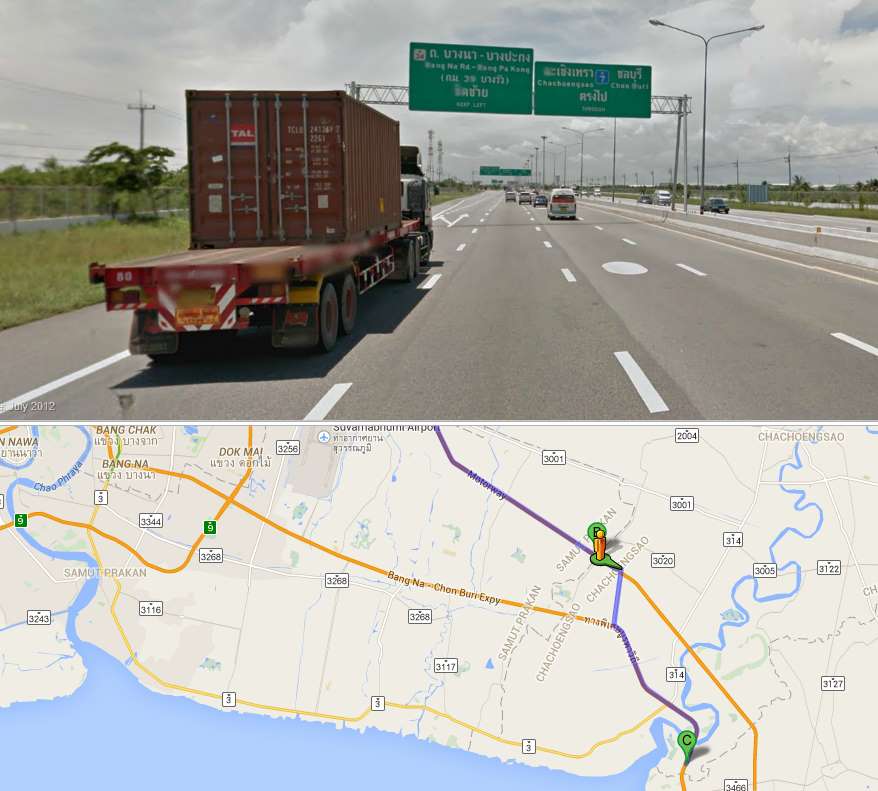ไปราว 2 กม.เศษ---เลี้ยวซ้ายออกถนนบางนา-บางปะกง (ทางหลวง34)
