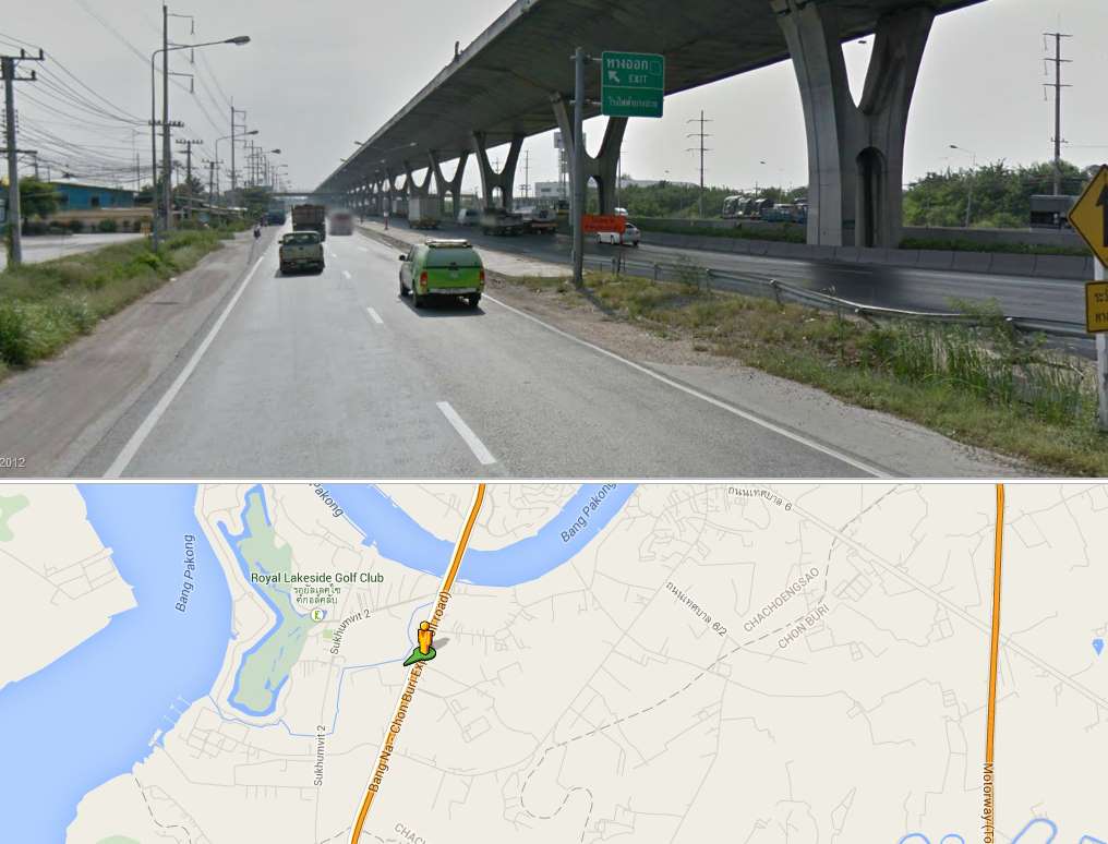 ซ้ายออกคู่ขนาน ตามป้ายเล็ก "ทางออก""โรงไฟฟ้าบางปะกง"