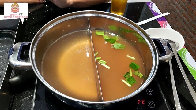 มานั่งปุ๊บพนักงานก็เอาหม้อมาตั้งเลยค่ะ น้ำซุปมี 2แบบ น้ำใสกับแบบต้มยำค่ะ