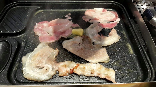 เอาเนยทาแล้วเอาหมูลงเลยค่ะ นาทีนี้ไม่สนไรละ กินกันไม่คุยเลยค่ะ 55555
