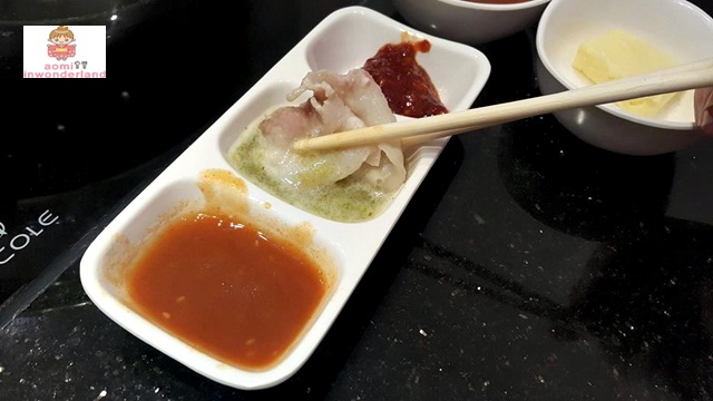 น้ำจิ้มมีทั้งหมด 4 แบบ สอบถามดูแล้วมีน้ำจิ้มสุกี้ น้ำจิ้มซีฟู๊ด น้ำจิ้มสำหรับปิ้งย่าง และน้ำจิ้มชาบูค่ะ