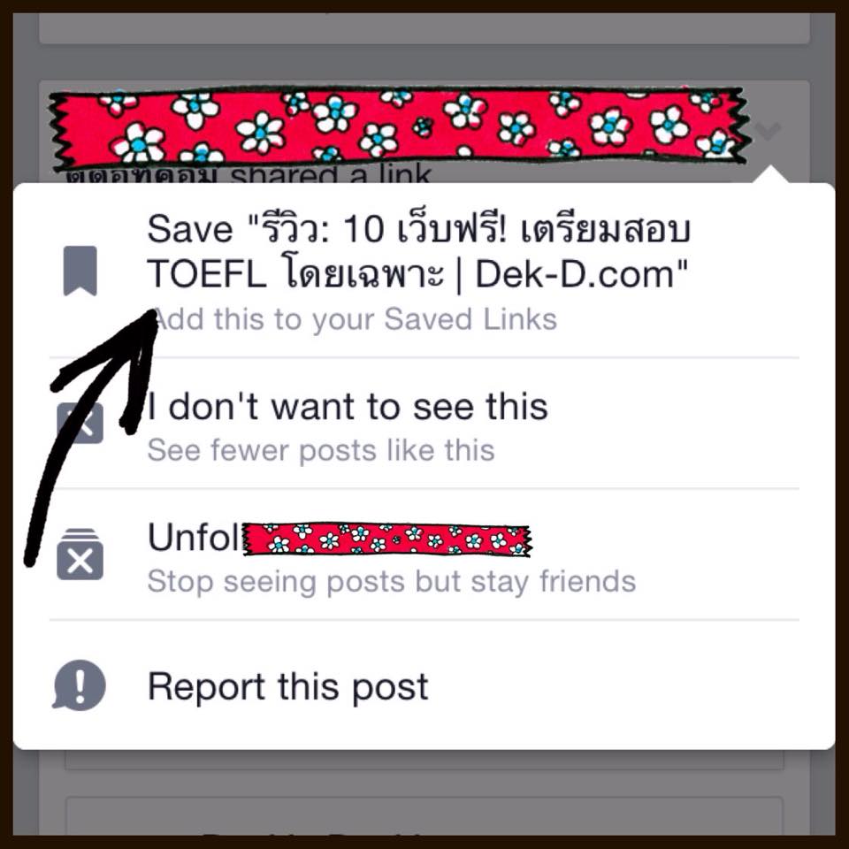 เพียงแค่นี้เราก็สามารถเก็บโพสที่สนใจที่เค้าโพสตามหน้า Facebook ไว้อ่านโดยไม่ต้องแชร์หน้าเพจ อีกต่อไป ^^