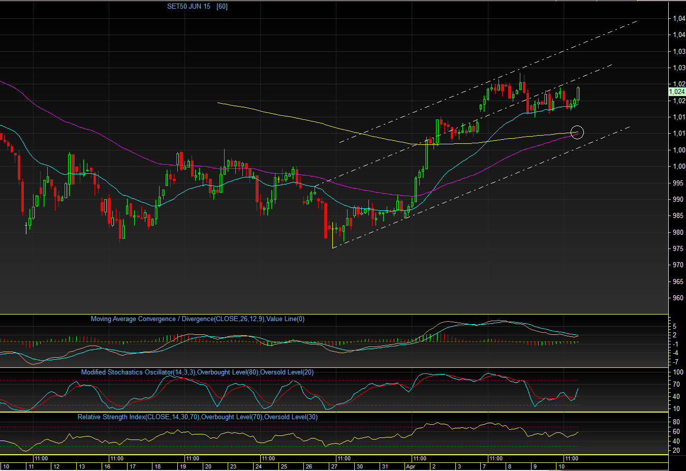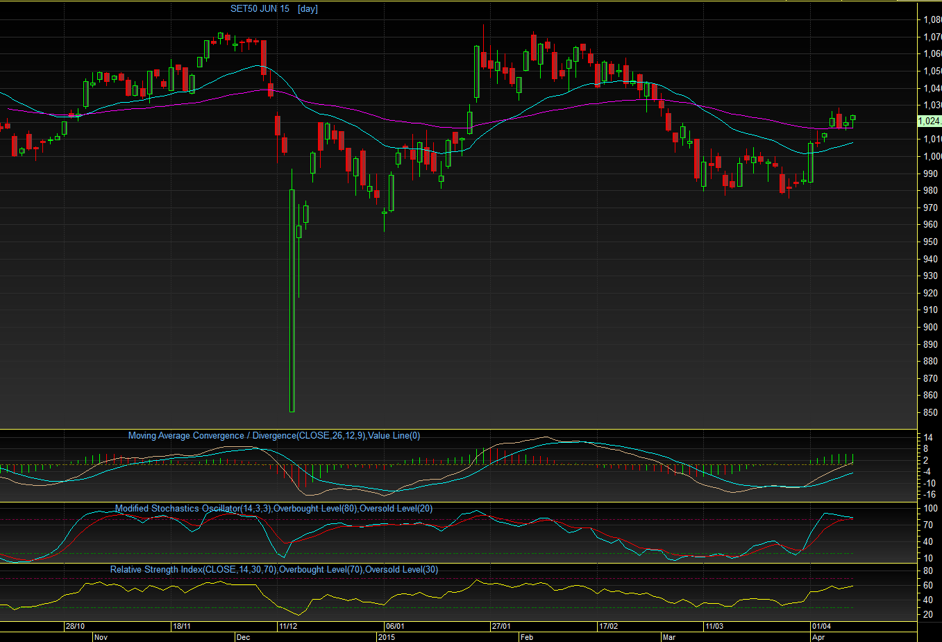 S50M15 TF Day : วันศุกร์ที่ผ่านมา แกว่งตัวในกรอบแคบๆ ( 1016 - 1024 จุด ) ซึ่งยังคงเลื้อยๆ EMA75 วัน ไม่สามารถฟันธงได้ว่า