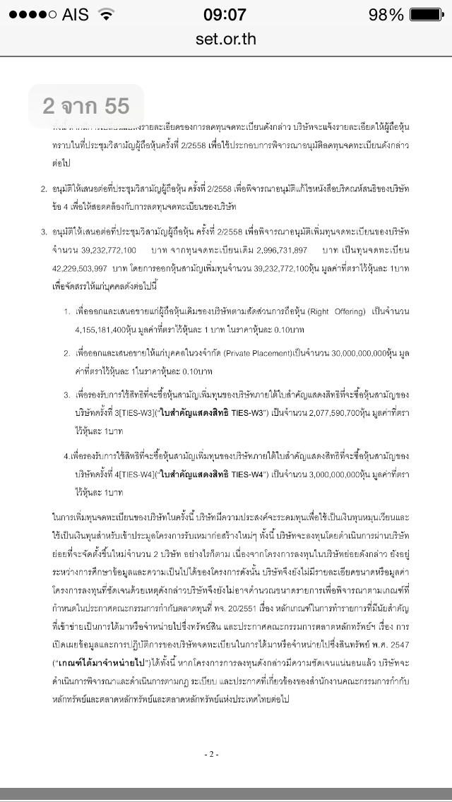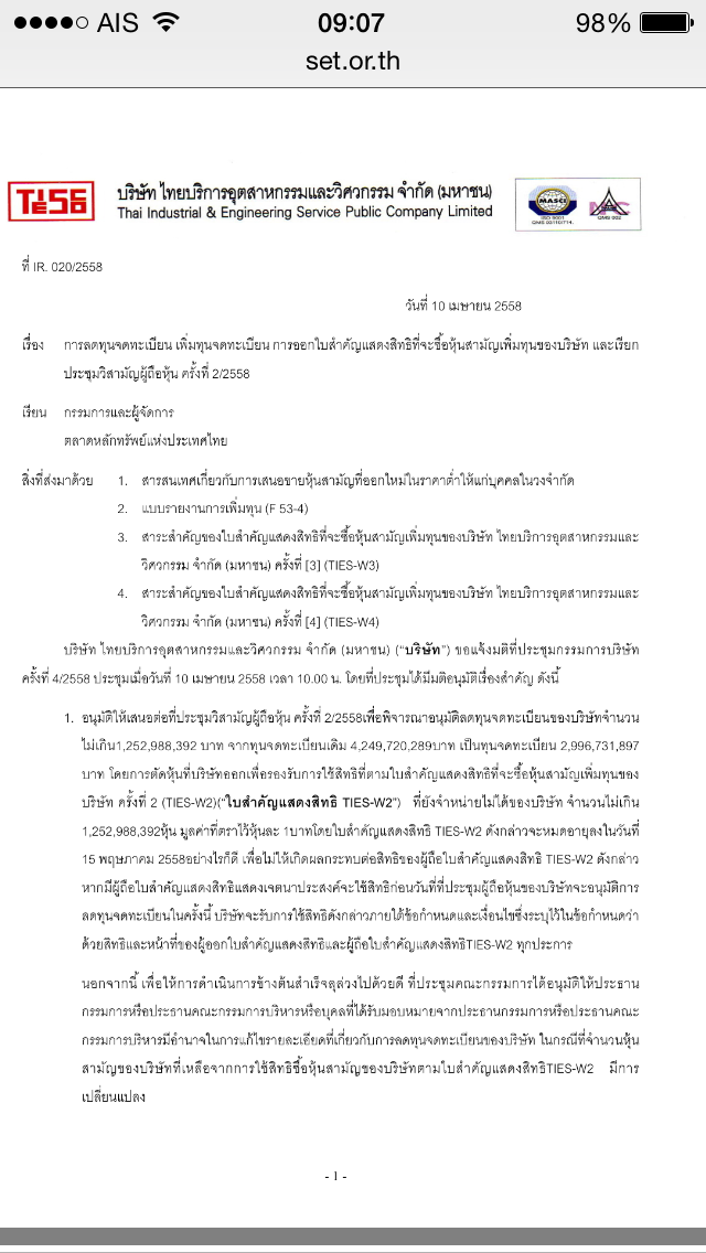 อยากรู้เรื่องการส่งงบ และการประกาศเพิ่มทุนของ TIES