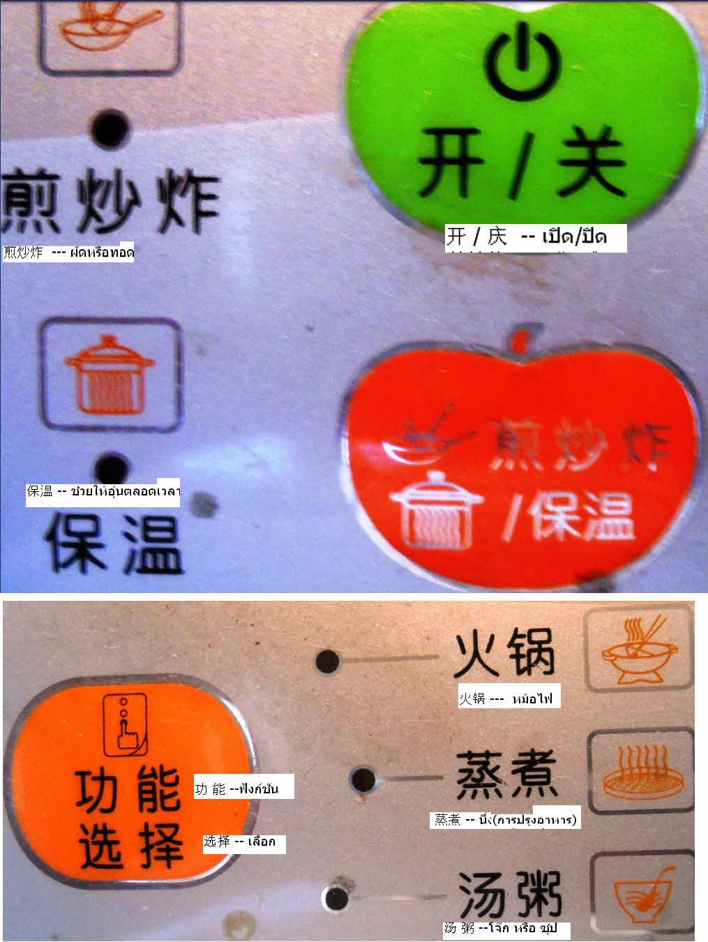 ค้นเจอเตาInductionเก่า ปุ่มควบคุมตั้งไฟเป็นภาษาจีน รบกวนขอความรู้ว่าแปลว่าอะไรครับ(มีภาพประกอบ) ขอบคุณมากครับ