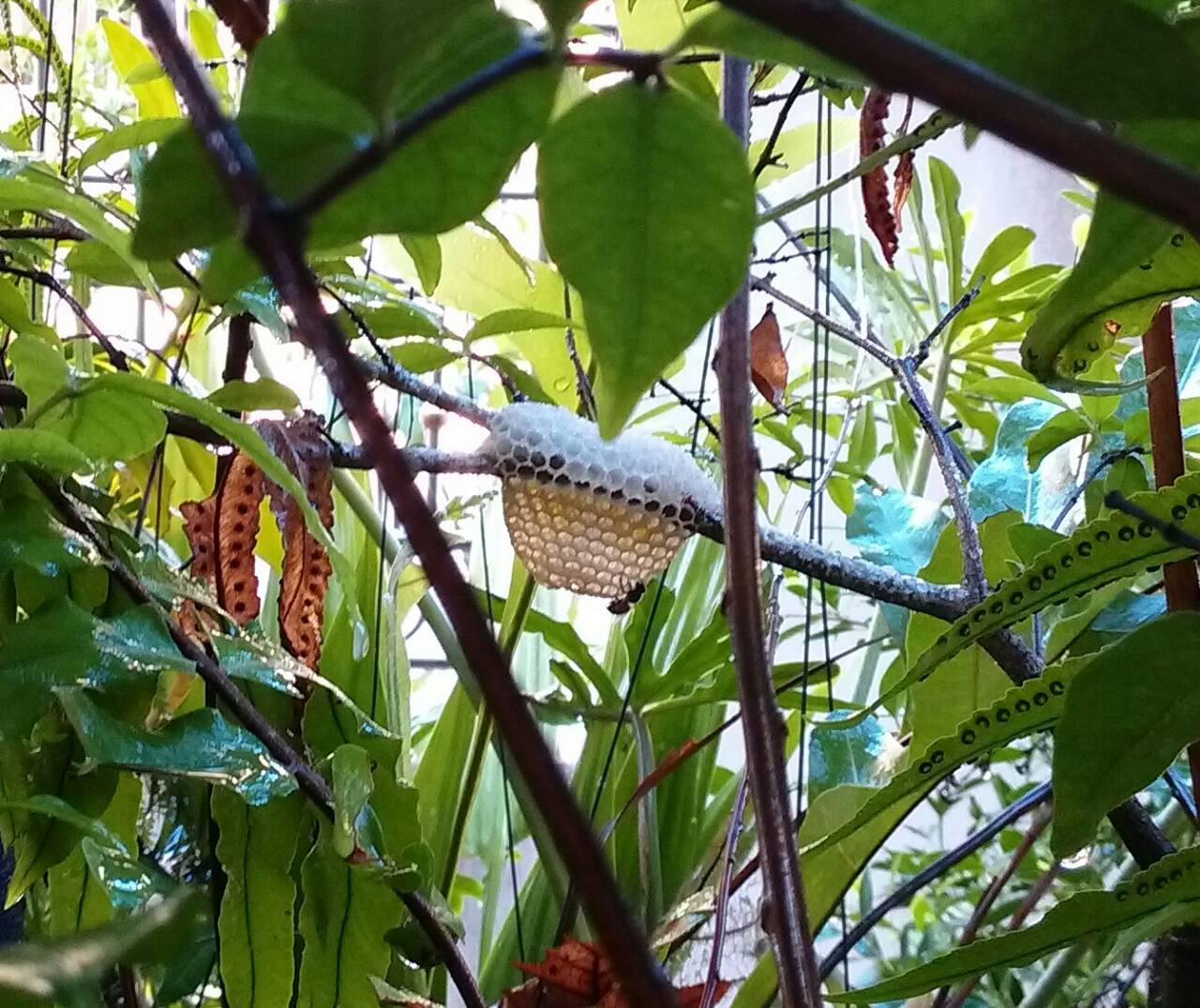 รบกวนท่านผู้รู้ ช่วยทีครับ นี่รังอะไร สูง 2ฟุต แบนเป็นแผ่นสัก 2นิ้ว ห้อยตามแนวกิ่งบนต้นมะม่วง ในบ้านครับ ผึ้ง หรือ ต่อ หรือไร ? อันตรายไหมครับ ถ้ามีพายุมาแรงๆ พัดรังตกลงมา จะเข้ารุมทำลายคนไหมครับ ท