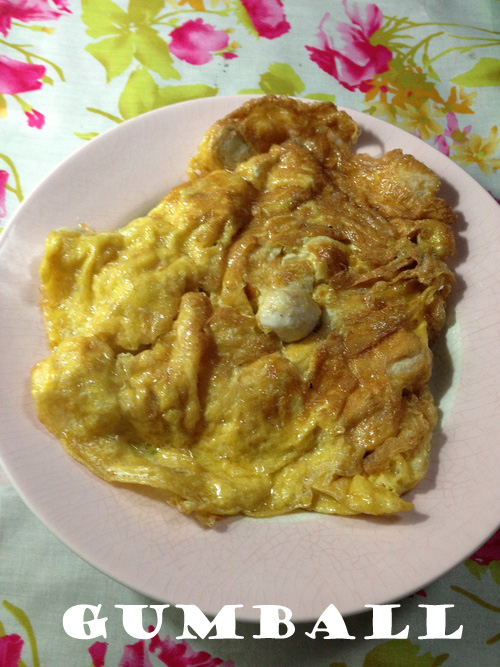 ไข่ซ่อนเต้าหู้ ชื่อเมนู 555 ฟังดูดี ง่ายๆตีไข่จะกี่ฟองก็ว่ากันไปกัมบอลใช้ 4 ฟอง หั่นเต้าหู้ไข่ลงไป 1 หลอด