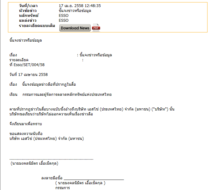 ESSO ... ทำไมถึงชี้แจงข่าวแบบนี้ครับ