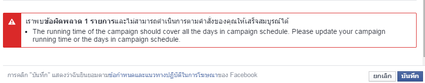โฆษณาใน facebook ไม่สามารถรีเซ็ทวงเงินได้ค่ะ ขึ้นแบบนี้ ใครเป็นบ้าง