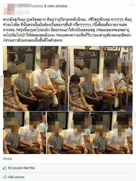 อยากที่ทราบว่า ประเทศญี่ปุ่นเป็นประเทศที่เคร่งครัดมากๆในการแอบถ่ายรูปคนอื่นในที่สาธารณะซึ่งเป็นเรื่องที่ฮอตฮิตไปเมื่อสัปดาห์ก่อน ผมไปเจอรูปชุดที่คนแชร์เยอะมากในเฟสบุ๊ค เป็นภาพที่เพื่อนของเจ้าของเฟสบุ๊คถ่ายส่งมาให้ประจาน ถากถางว่า ทำไมคนทีหน้าตาไม่ดี ถึงมีแฟนหล่อ คอยดูนะจะไปอบผิวให้ดำ ไปให้หมอเขมรพม่าทำเสน่ (คงคาดว่าเจ้าของเฟสกัดว่าหน้าเหมือนพวก เขมรพม่า)