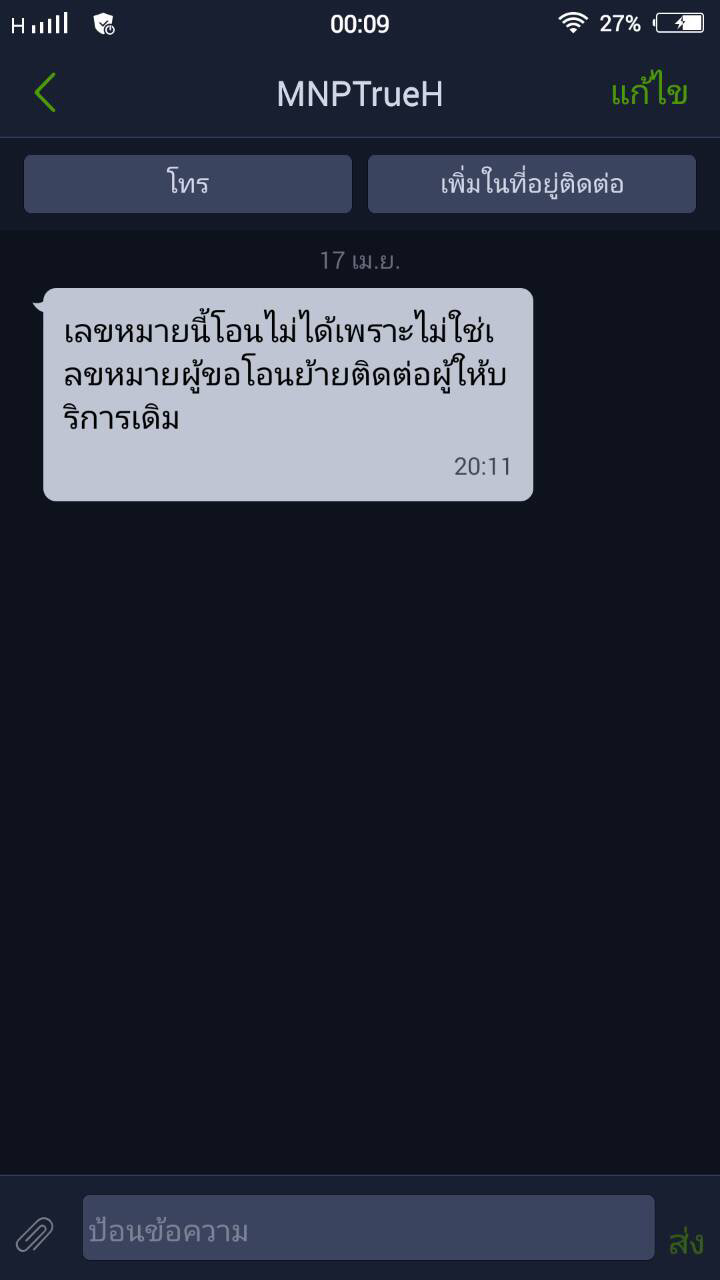 ย้ายค่ายจากais ไปtrue ไม่ได้